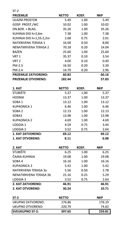 In a quiet part of Privlaka, just a few minutes’ walk from the sandy beach and with a sea view, a semi-detached unit is for sale – Villa L2, one of four newly built units in a carefully designed project. The property features modern architecture, thoughtful room layout, and high energy efficiency, ensuring exceptional living comfort both in the summer season and throughout the year. The villa is suitable both for personal residence and as an investment. The total gross floor area is 397.65 m2, with a net usable area of 250.81 m2.