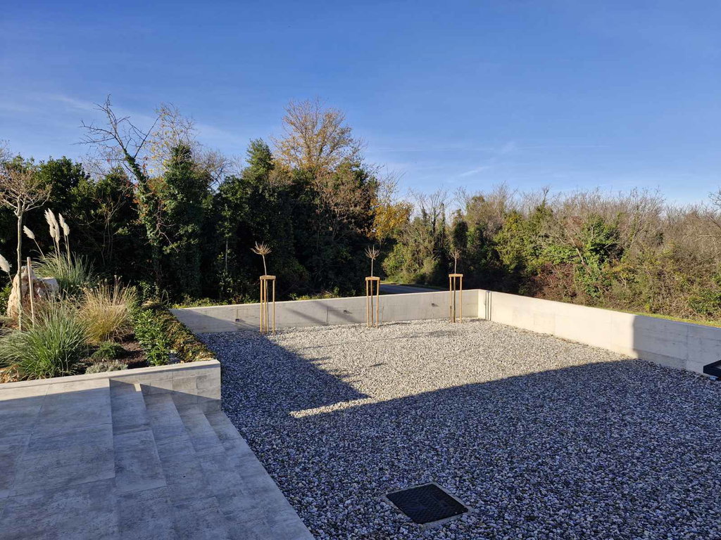 Na prestižni lokaciji v Umagu je naprodaj sodobna luksuzna vila, umeščena na prostorni in urejeni parceli velikosti približno 990 m2. Vila je bila grajena z visokokakovostnimi materiali in premišljeno zasnovana za udobno bivanje ter visoko stopnjo zasebnosti. Skupna neto površina vile znaša 214,72 m2, dodatno vrednost pa nepremičnini daje odprt pogled na morje.