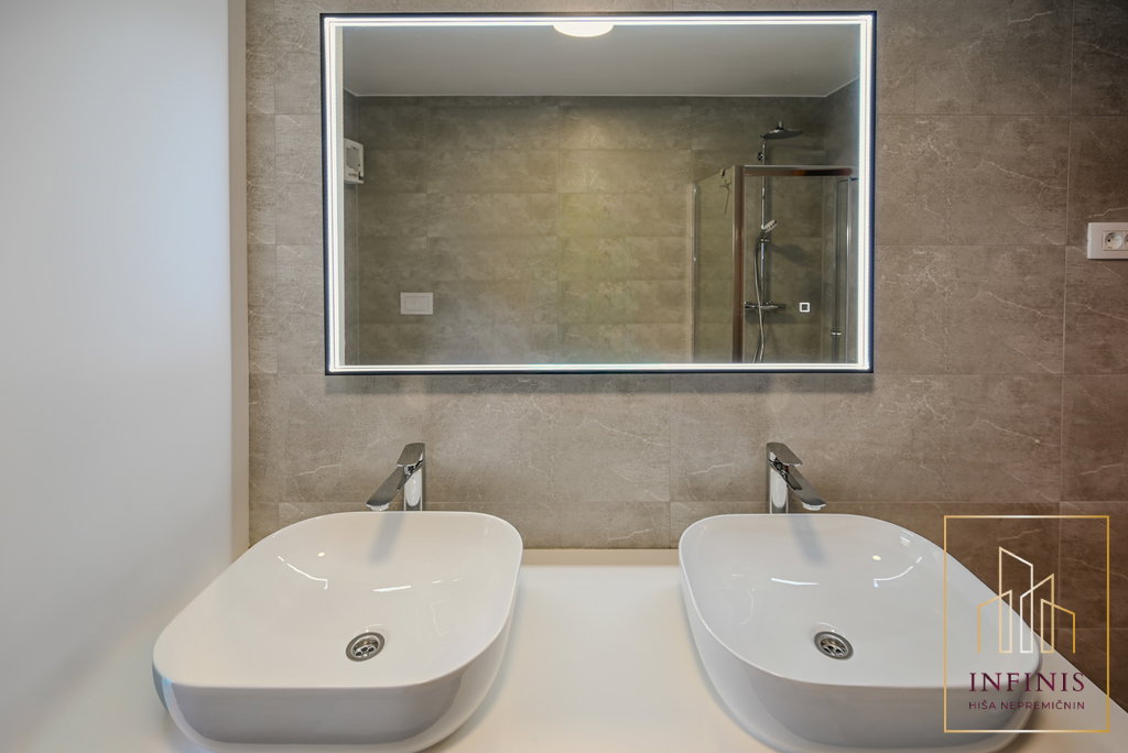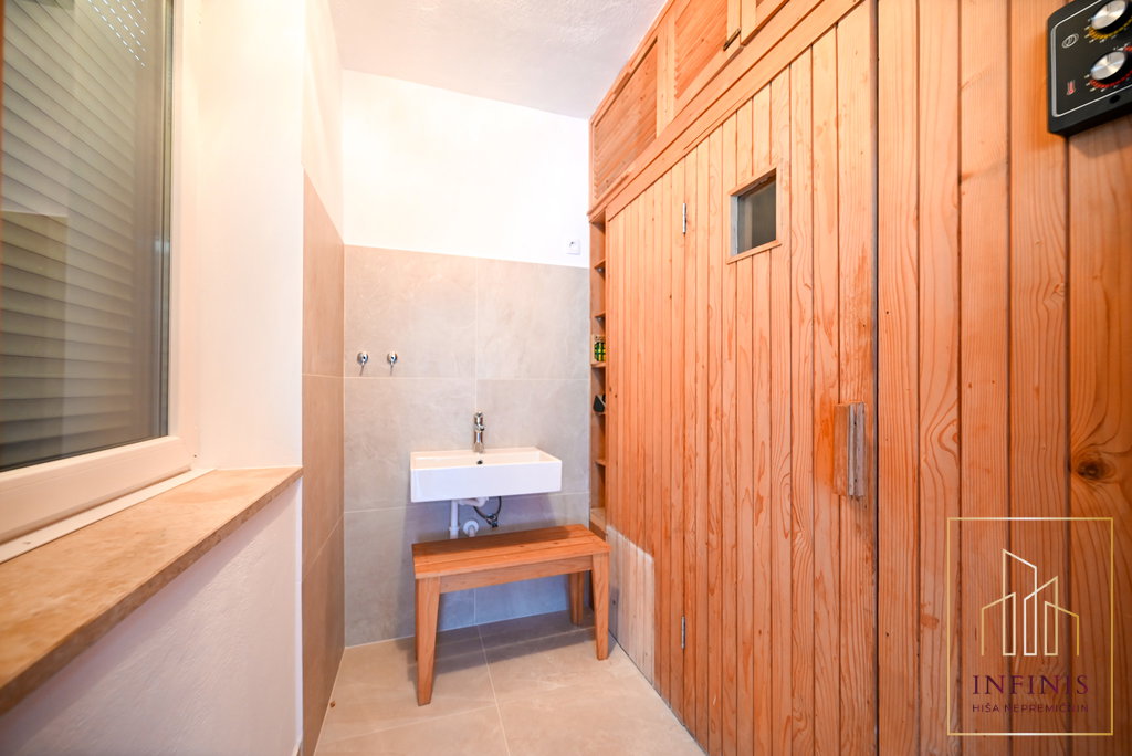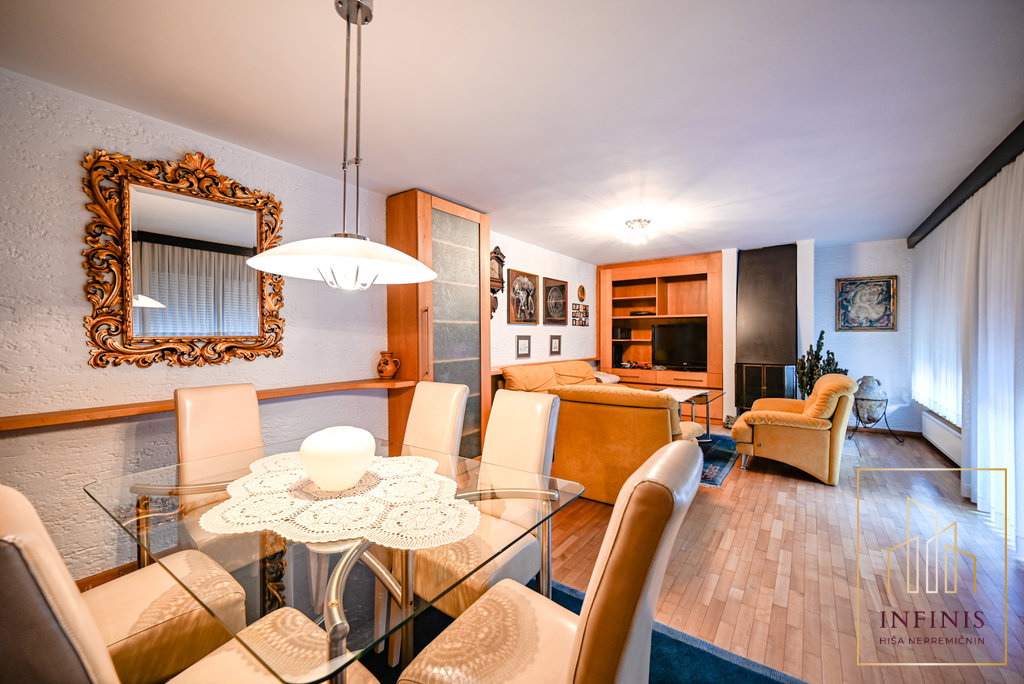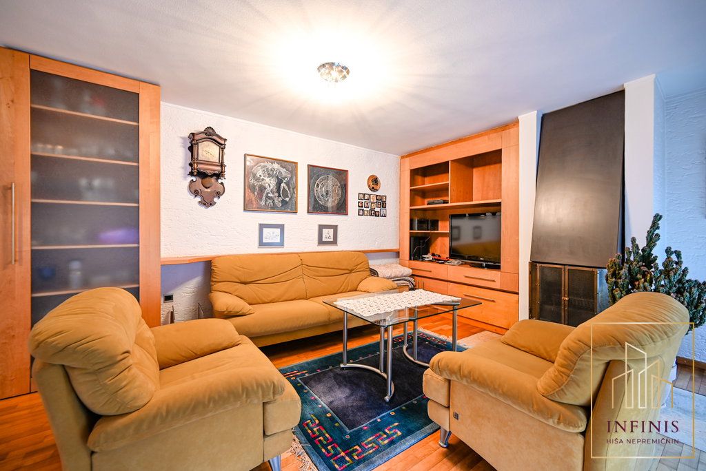 Hiša je bila zgrajena leta 1976, v letu 2026 pa je bila celovito prenovljena praktično vsa stanovanjska površina, razen dnevne sobe in kuhinje. Stanovanje je delno opremljeno, prostorno in svetlo, z razporeditvijo, ki vključuje dnevno sobo z jedilnico, kuhinjo z jedilnim delom, predsobo, utility, ločen WC, tri spalnice, kopalnico, ločeno savno ter dodatne shranjevalne prostore, vključno s kletjo in shrambo. Poleg tega ima stanovanje teraso in urejen lastniški atrij z vrtom, ki nudita prijetne kotičke za sprostitev na prostem.