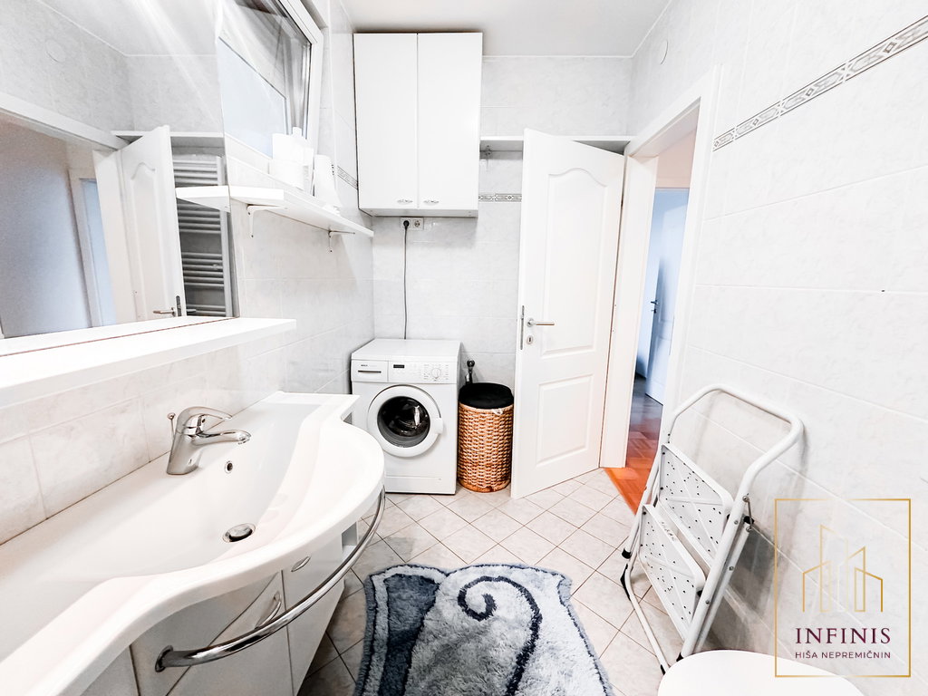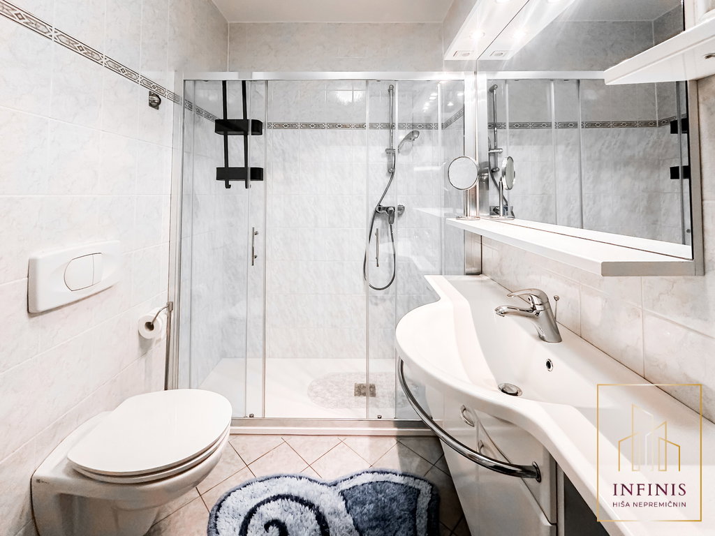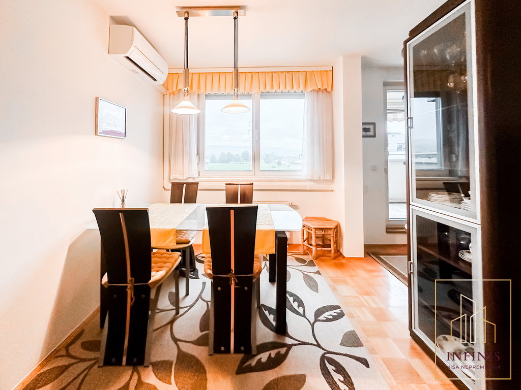 Stanovanju pripadata eno parkirno mesto v garaži in shramba v kleti. Ogrevanje je urejeno na plin.
