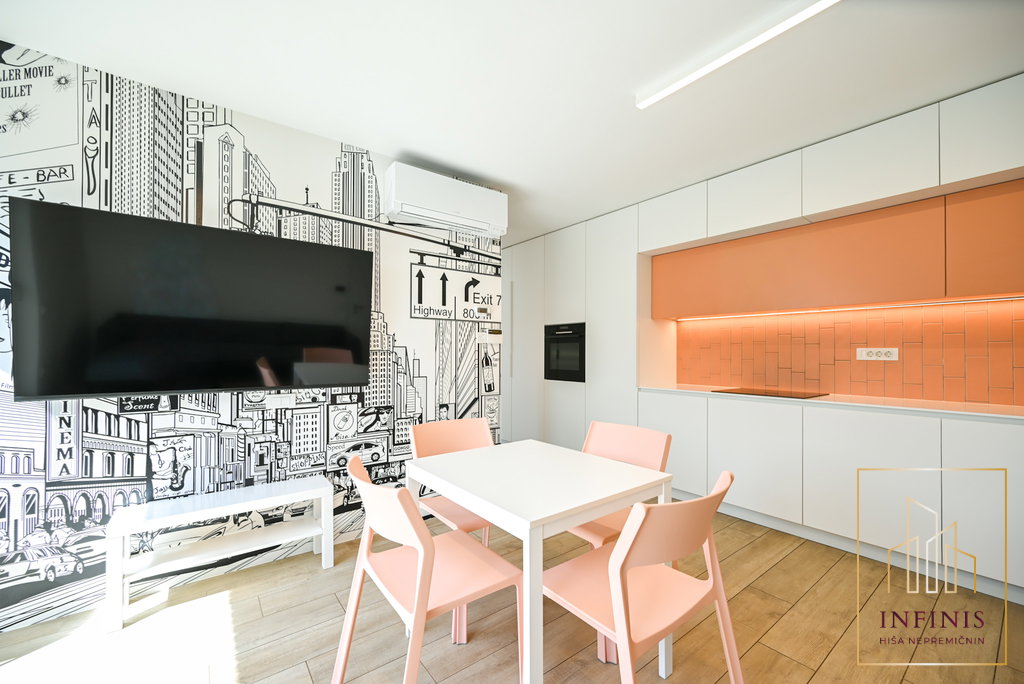 Stanovanje obsega prostoren dnevno-bivalni del, kuhinjo z jedilnim delom, udobno ločeno spalnico ter moderno kopalnico. Zaradi odlične tlorisne zasnove je prostor funkcionalen, svetel in omogoča prijetno bivanje brez dodatnih vlaganj. Stanovanju pripada tudi lastniško parkirno mesto pred objektom ter velik atrij.