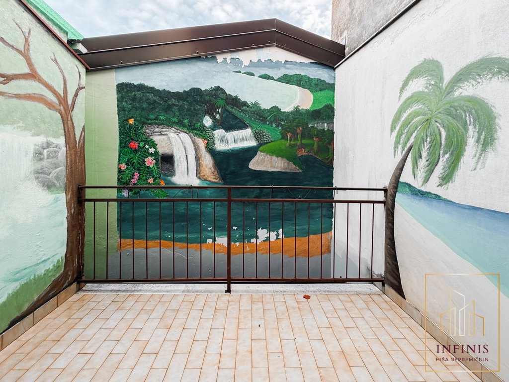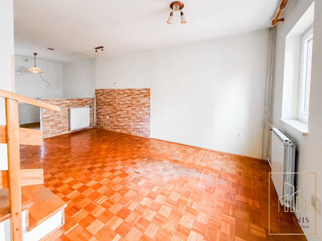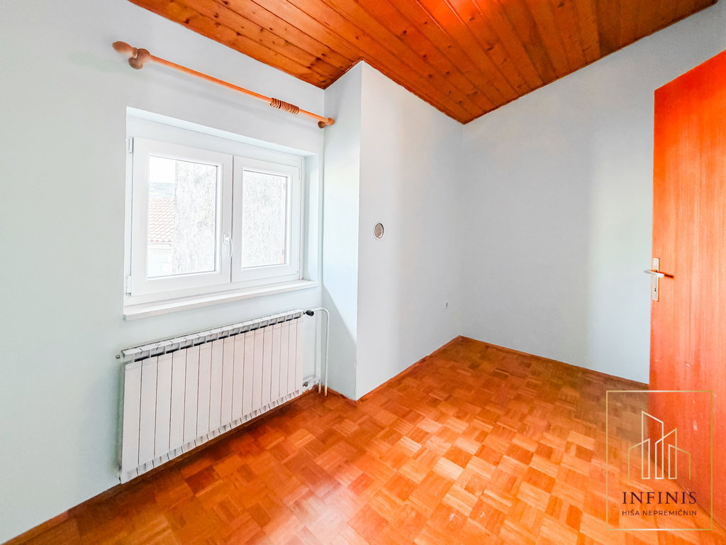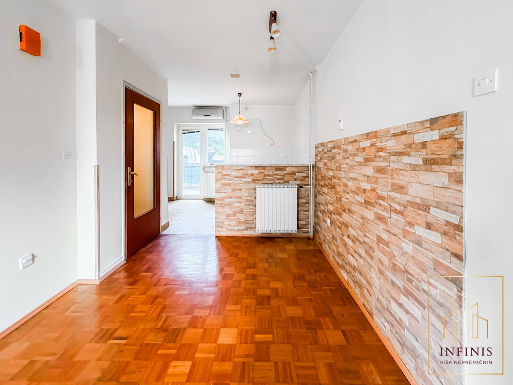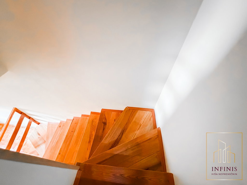V prvi etaži je urejen dnevno-bivalni del s kuhinjo ter izhodom na balkon, ki prostoru nudi dodatno svetlobo in zračnost. V mansardni etaži se nahajata dve spalnici ter kopalnica.