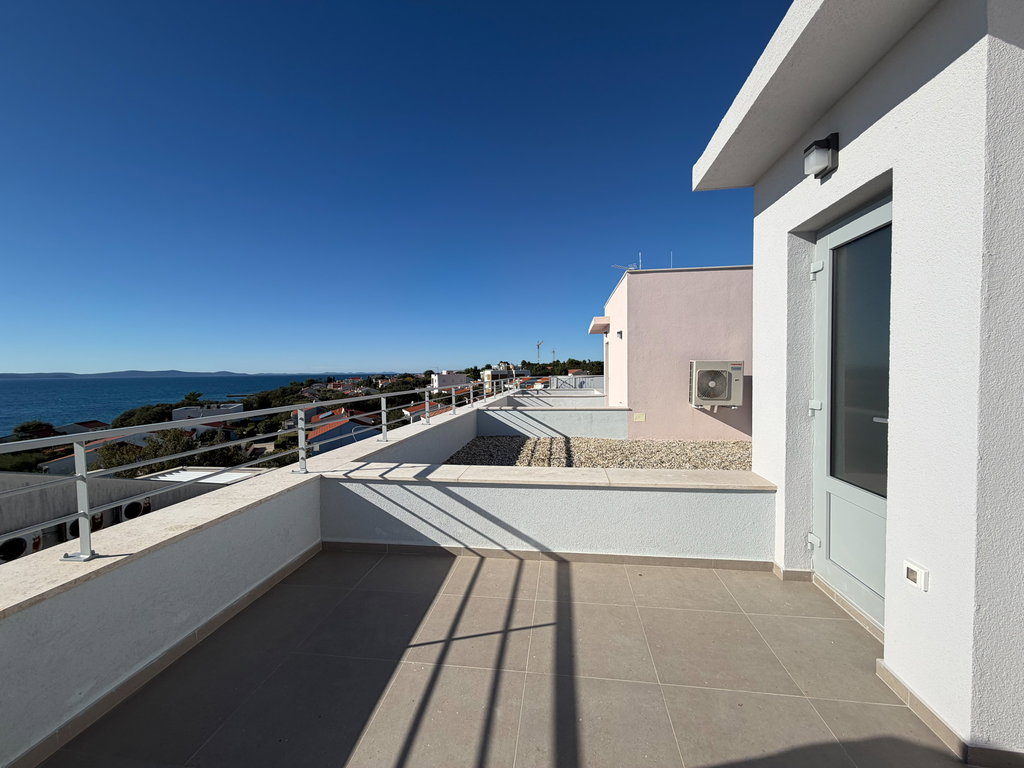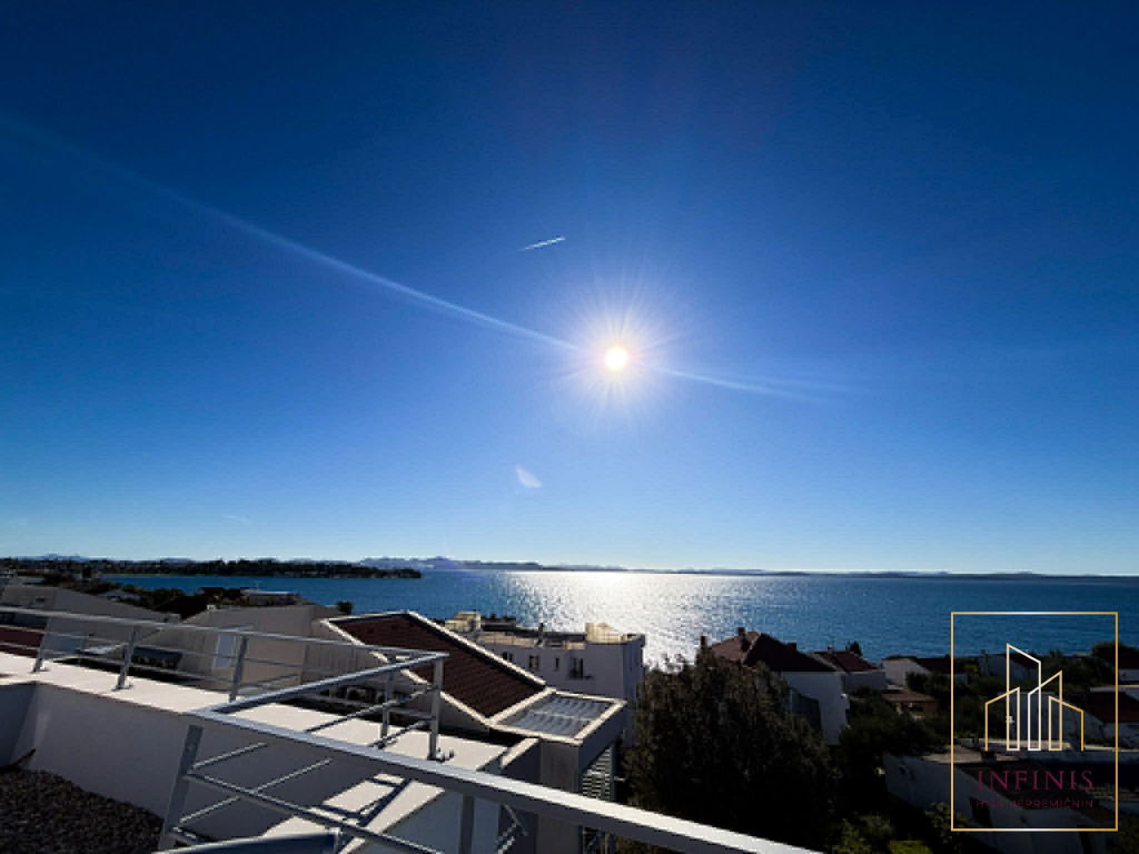 PETRČANE – LUKSUZNO DVOETAŽNO STANOVANJE Z VRTOM, STREŠNO TERASO IN POGLEDOM NA MORJE, le 80 metrov do plaže
