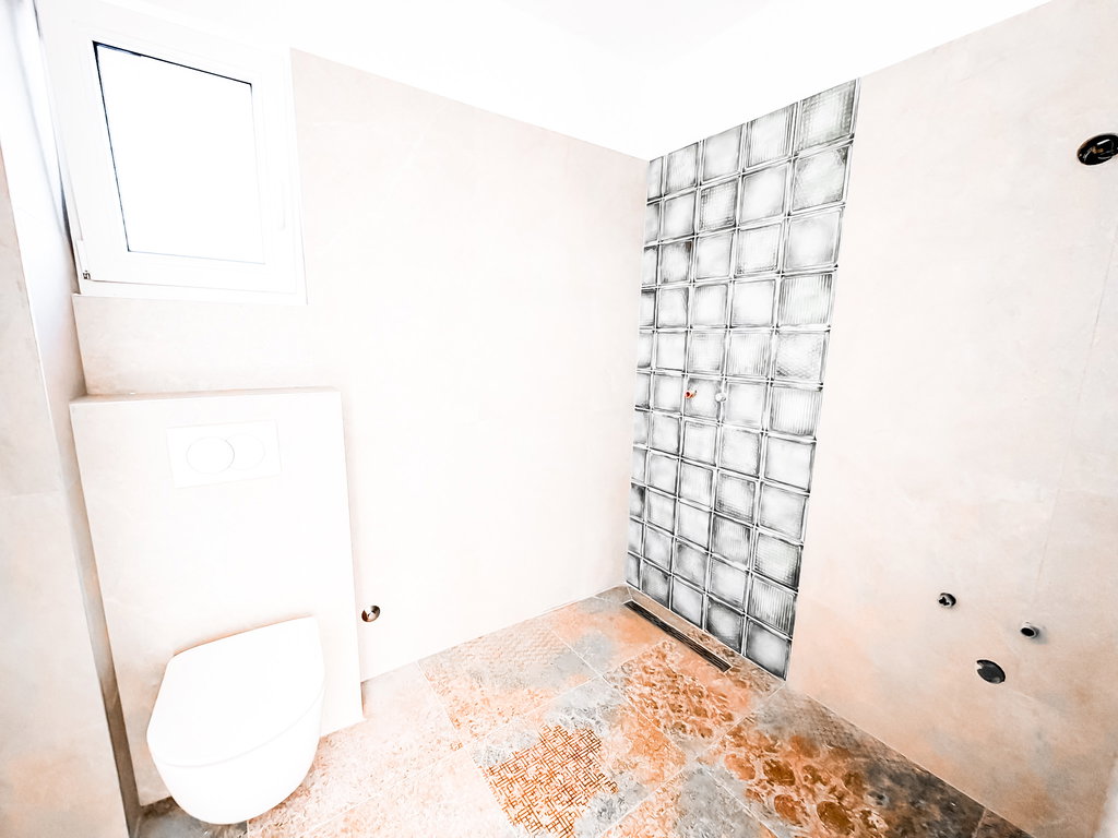 Vsi bivalni prostori so tlakovani s kakovostno keramiko, v spalnicah pa je položen vrhunski vinil. Vgrajeno je električno talno ogrevanje (razen v spalnicah), v kopalnicah pa dodatno električno gretje. V kuhinji, dnevni sobi in spalnicah so nameščene ločene klimatske enote. Okna so PVC z dvoslojno zasteklitvijo ter električnimi roletami.