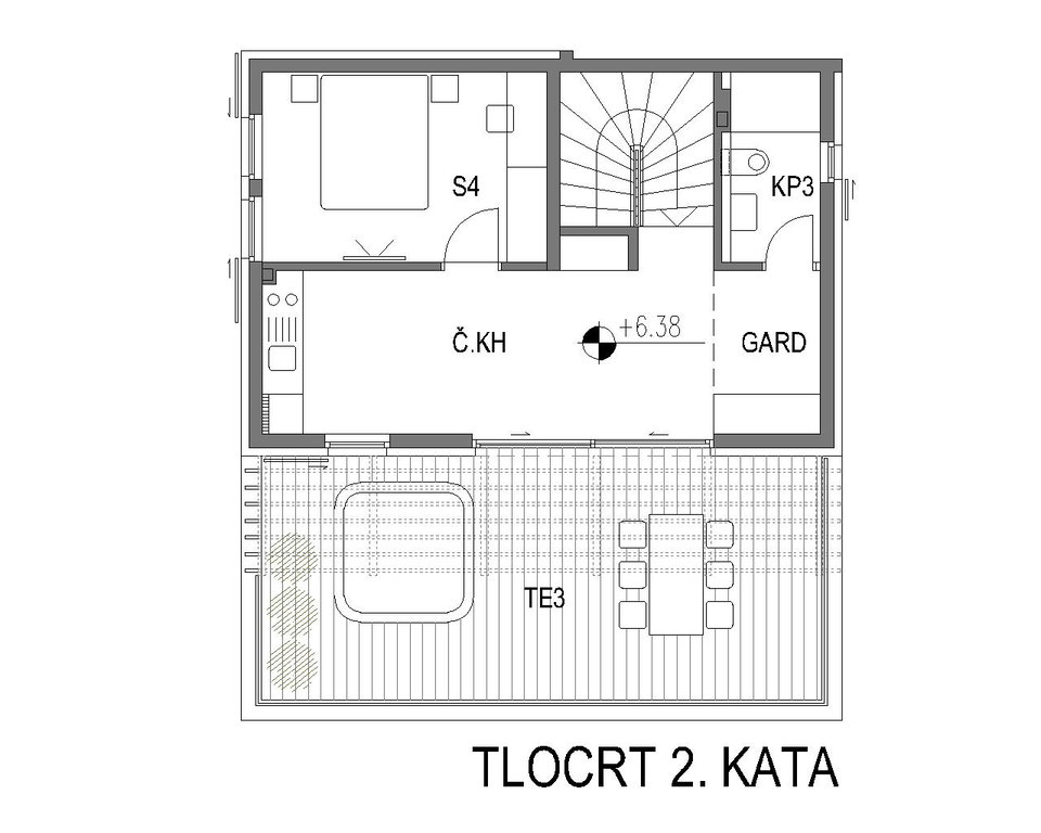 V drugem nadstropju je spalnica z lastno kopalnico in ložo. V drugem nadstropju je tudi čajna kuhinja z izhodom na izjemno teraso, ki združuje pokrit in odkrit del. Tu se nahajajo inštalacije za jacuzzi, ki omogoča popolno sprostitev in uživanje na prostem. Strešna terasa je ena od ključnih prednosti hiše, saj nudi visoko stopnjo zasebnosti in predstavlja idealen prostor za druženje.