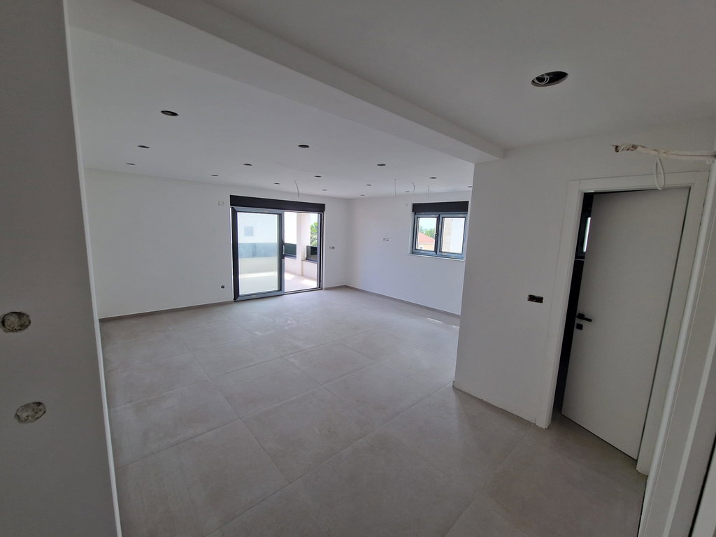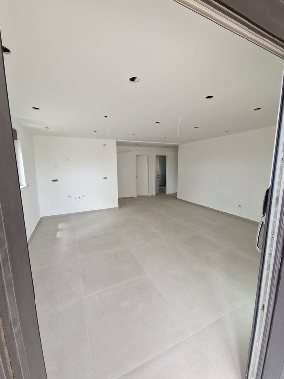 Talne obloge: Keramične ploščice dimenzij 90×90 cm v celotnem apartmaju ter na terasah, kjer so ploščice debeline 2 cm za dodatno vzdržljivost.