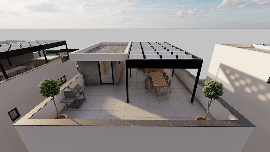 Priprava za jacuzzi: Na terasi je pripravljena inštalacija za jacuzzi (dovod in odvod vode), kar omogoča kasnejšo namestitev brez dodatnih gradbenih posegov.
