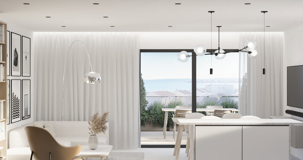 Velikost: Površina apartmaja znaša neto 82 m2, kar zagotavlja prostorne in svetle bivalne prostore.