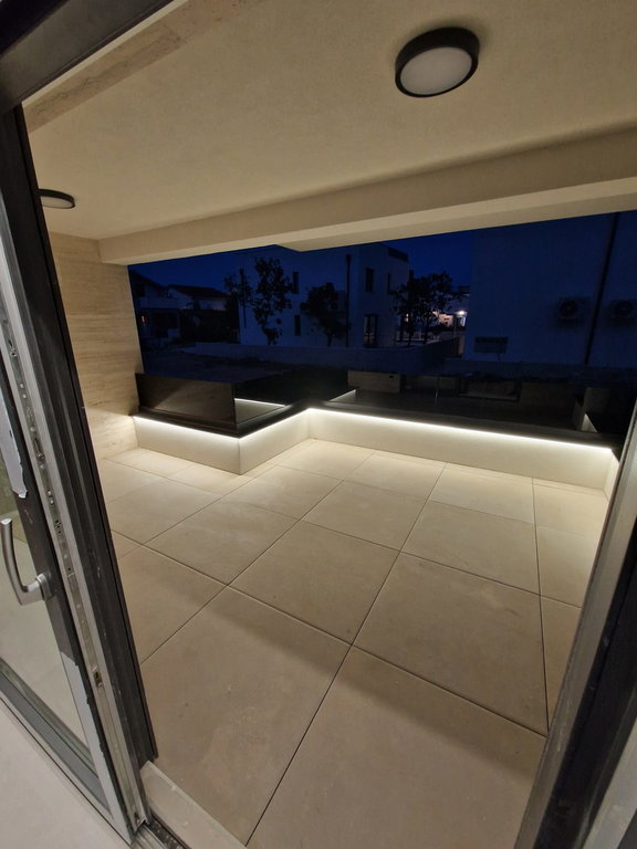 Terase: Vse terase so opremljene z LED ambientno razsvetljavo (LED trakovi pod kamnitimi pokrovi), kar ustvarja prijetno vzdušje ob večernih urah.